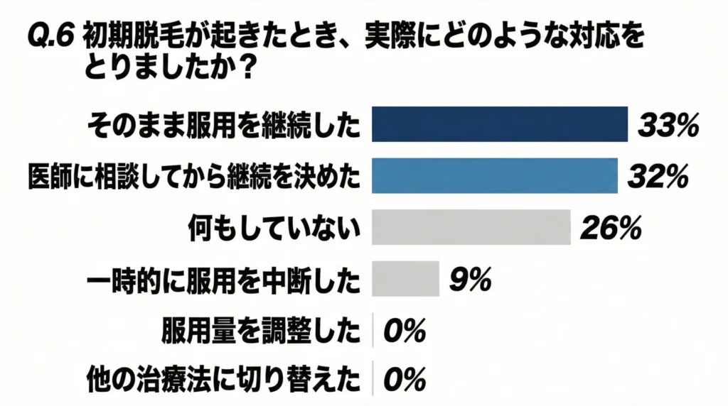 初期脱毛が起きても服用を継続することが重要で、自己判断での中断は避けるべきです。